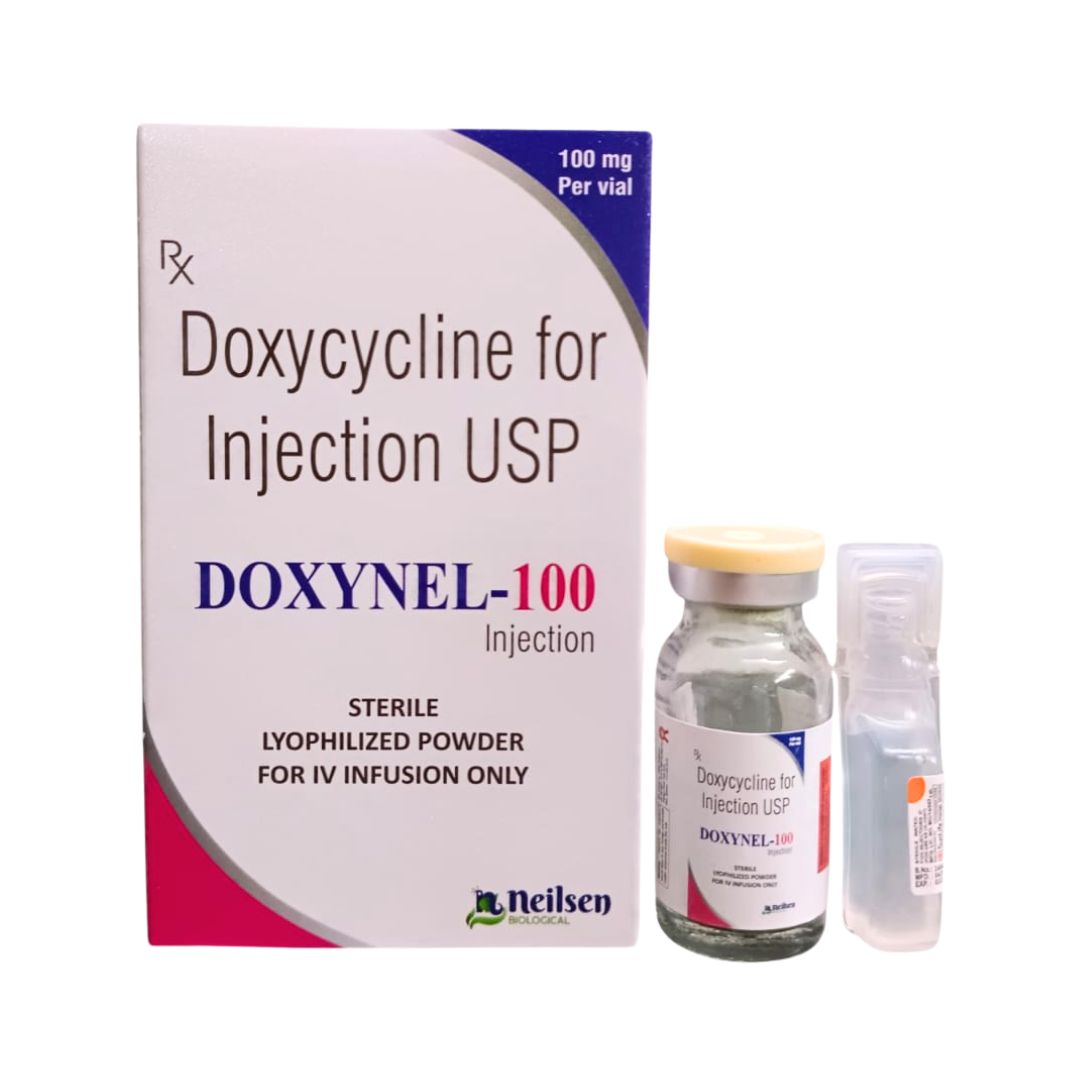 DOXYNEL 100mg Injection is an antibiotic medicine used to treat bacterial infections in your body. It is effective in some infections of the lungs, urinary tract, eyes, and others. It kills bacteria, which helps to improve your symptoms and cure the infection.